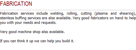 FABRICATION SERVICES OFFERED